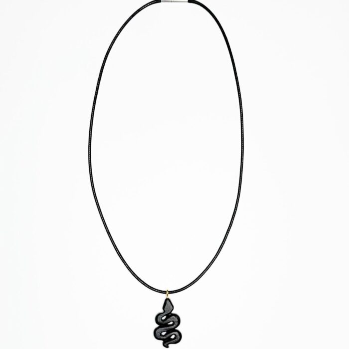Width of the motif: 18mm. Length of the motif: 30mm.Thickness of the motif: 4.5mm. Waxed Leather Cord Chain : Black. Length: 50cm.