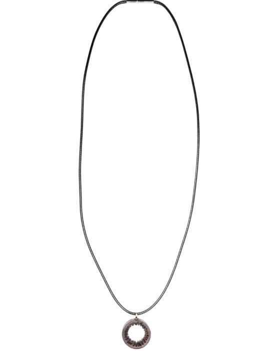 Outer diameter of the motif: 19mm. Inner diameter of the motif: 8mm. Thickness of the motif: 7mm. Waxed Leather Cord Chain : Black. Length: 50cm.