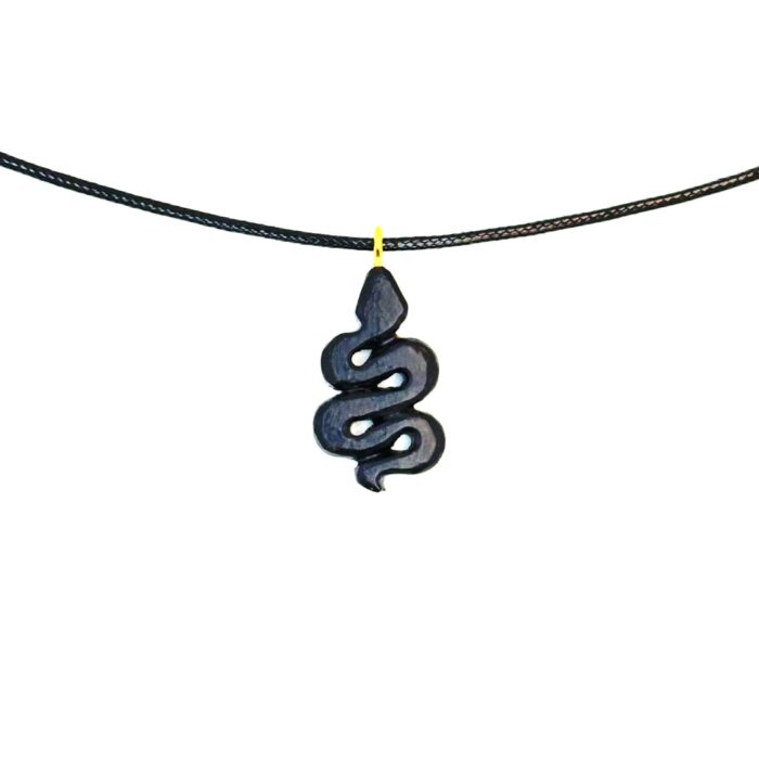 Width of the motif: 13mm. Length of the motif: 27mm.Thickness of the motif: 4.5mm. Waxed Leather Cord Chain : Black. Length: 50cm.