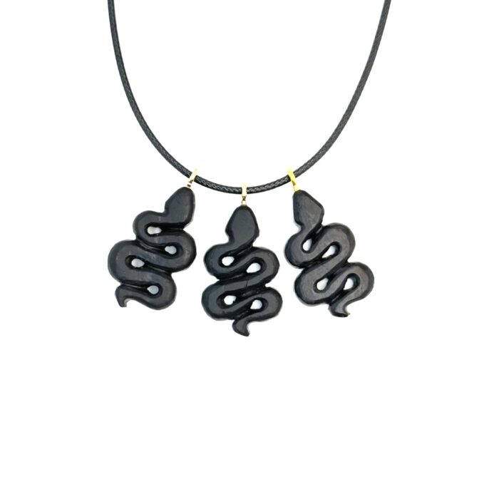 Width of the motif: 18mm. Length of the motif: 30mm.Thickness of the motif: 4.5mm. Waxed Leather Cord Chain : Black. Length: 50cm.