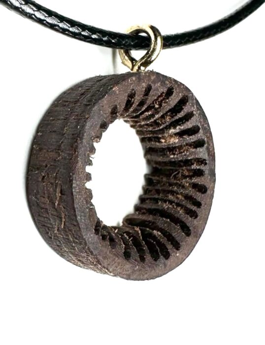 Outer diameter of the motif: 19mm. Inner diameter of the motif: 8mm. Thickness of the motif: 7mm. Waxed Leather Cord Chain : Black. Length: 50cm.